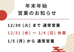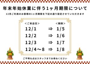また、年末年始の休業に伴う1ヶ月期限について、上記の通り設定させていただきます。