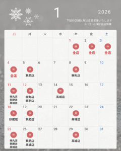2026年 1月 営業のご案内・店舗からのお知らせ